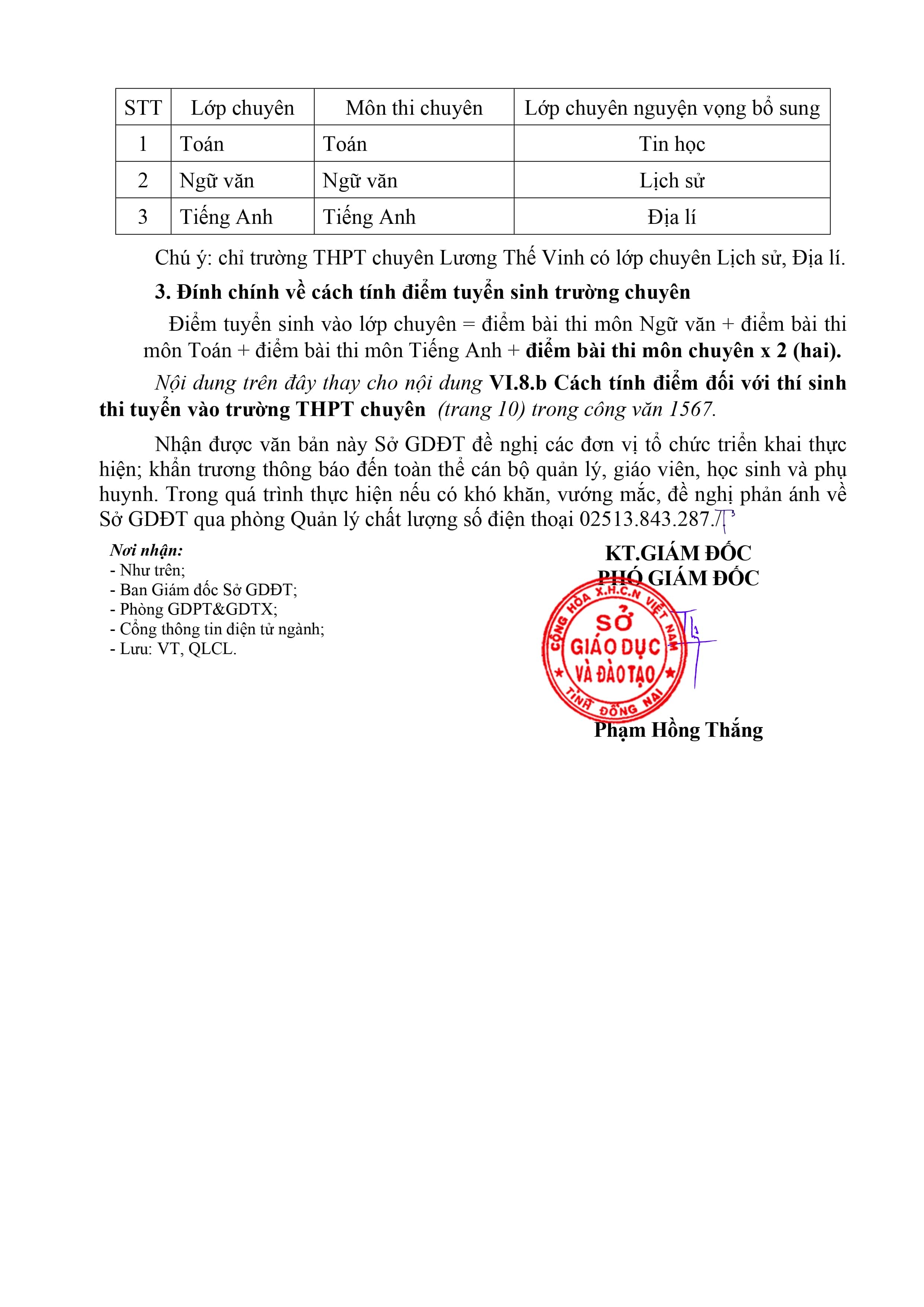 V/v điều chỉnh sai sót trong công văn 1567/SGDĐT QLCL ngày 11/3/2026 về việc Hướng dẫn tuyển sinh vào lớp 10 THPT năm học 2026-2027 của Sở Giáo dục và Đào tạo.