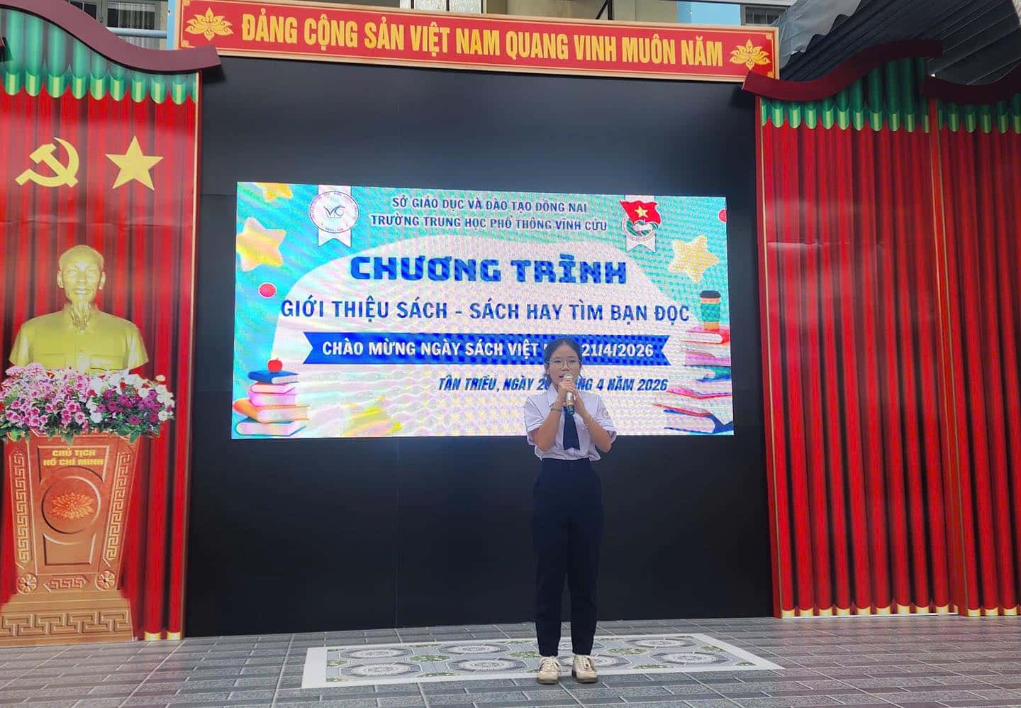 Hòa chung không khí hưởng ứng Ngày Sách Việt Nam 21/4, sáng ngày 20/4/2026, trong buổi chào cờ đầu tuần, Trường THPT Vĩnh Cửu cùng Đoàn trường đã tổ chức hoạt động giới thiệu sách với chủ đề “Sách hay tìm bạn đọc”.