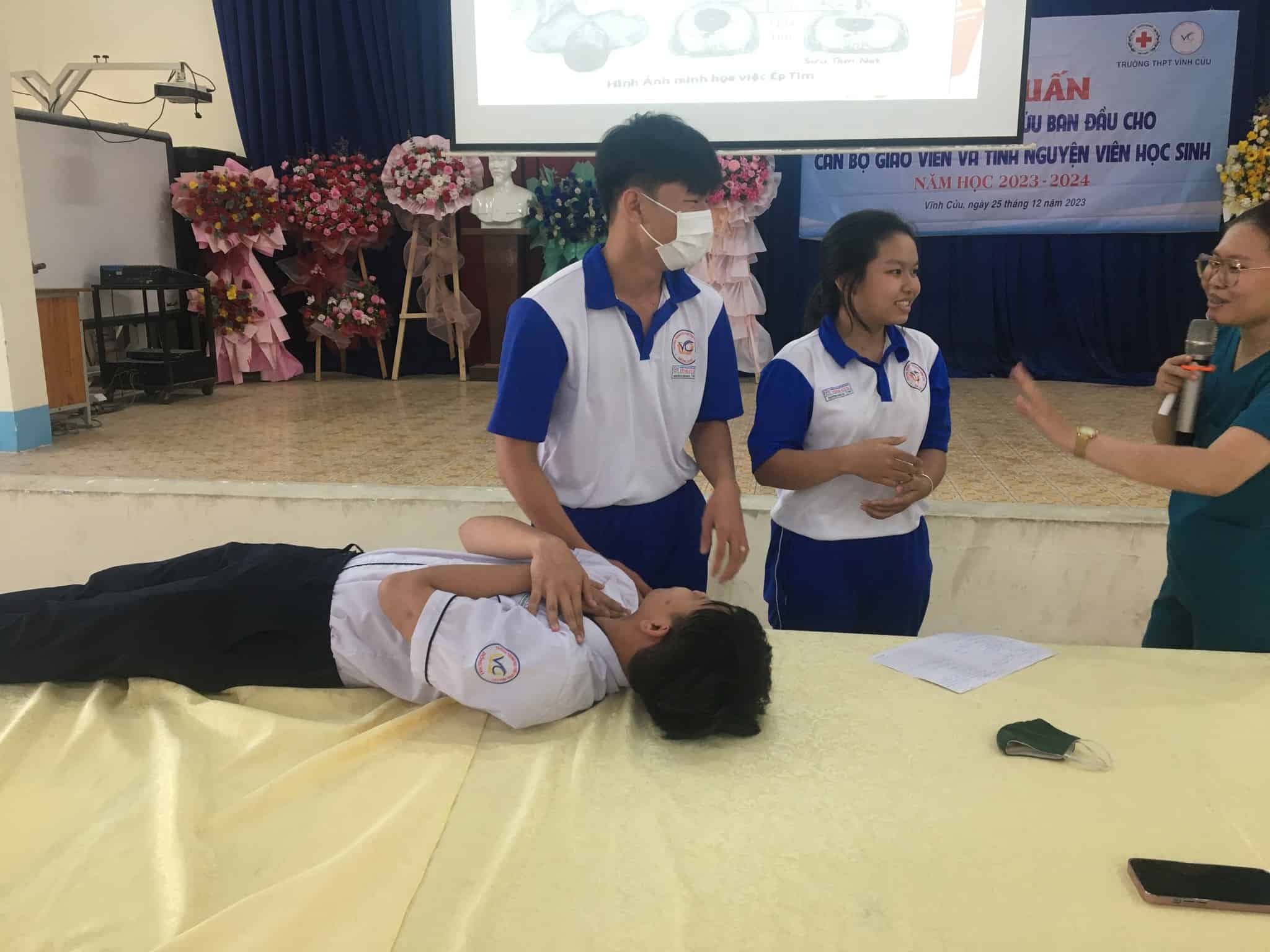 Nhằm trang bị cho các bạn học sinh có một số kiến thức cơ bản và kỹ năng về sơ cấp cứu ban đầu. Chiều ngày 25, 28/12/2023, Đoàn Trường phối hợp cùng Hội chữ thập đỏ trường THPT Vĩnh Cửu đã tổ chức buổi tập huấn sơ cấp cứu ban đầu cho BCS Đoàn và TNV CTĐ học sinh.