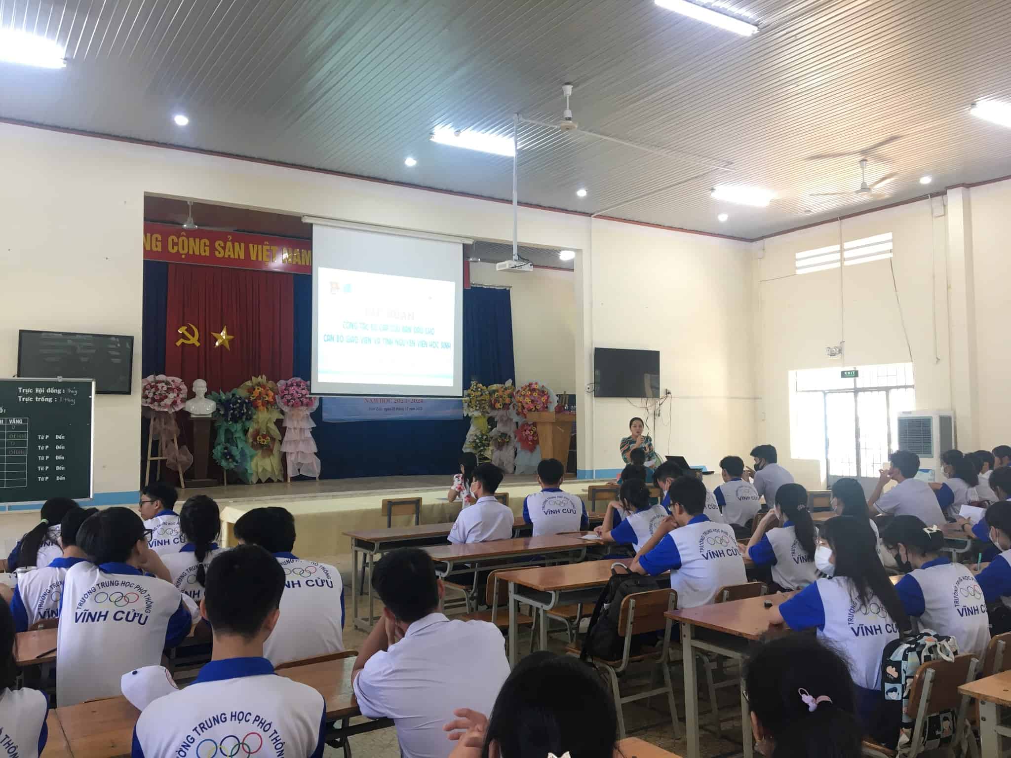 - Trường THPT Vĩnh Cửu đã phối hợp với Tập đoàn Viettel – Chi nhánh Đồng Nai tổ chức buổi chiếu phim “Mưa Đỏ”