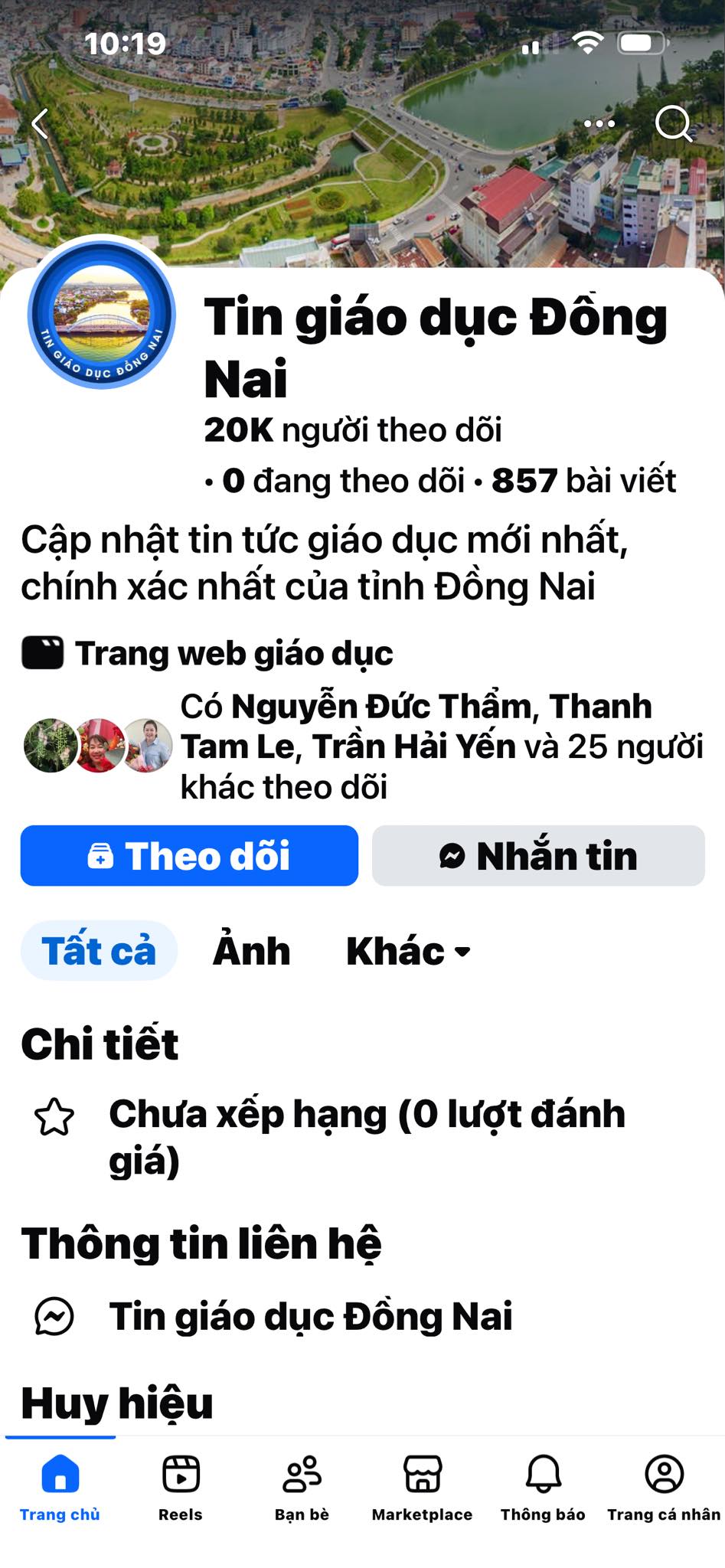 Sở Giáo dục và Đào tạo tỉnh Đồng Nai có duy nhất 01 trang fanpage Thông tin Giáo dục Đồng Nai và có tích xanh của Meta;